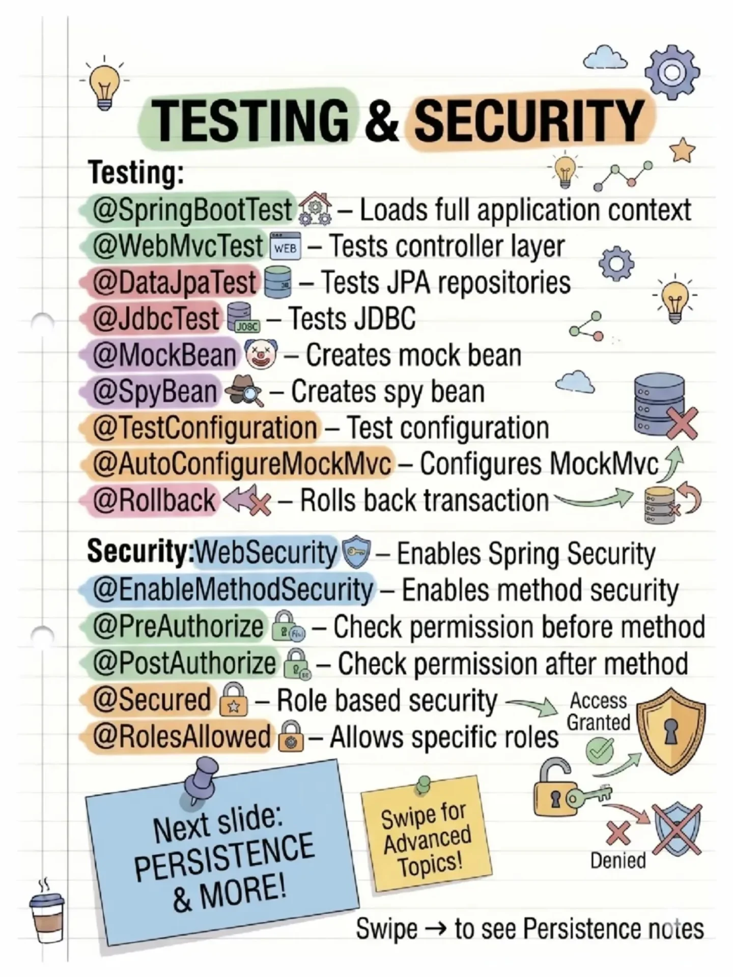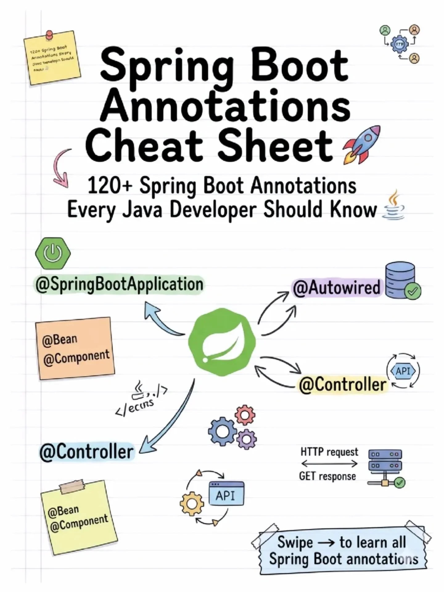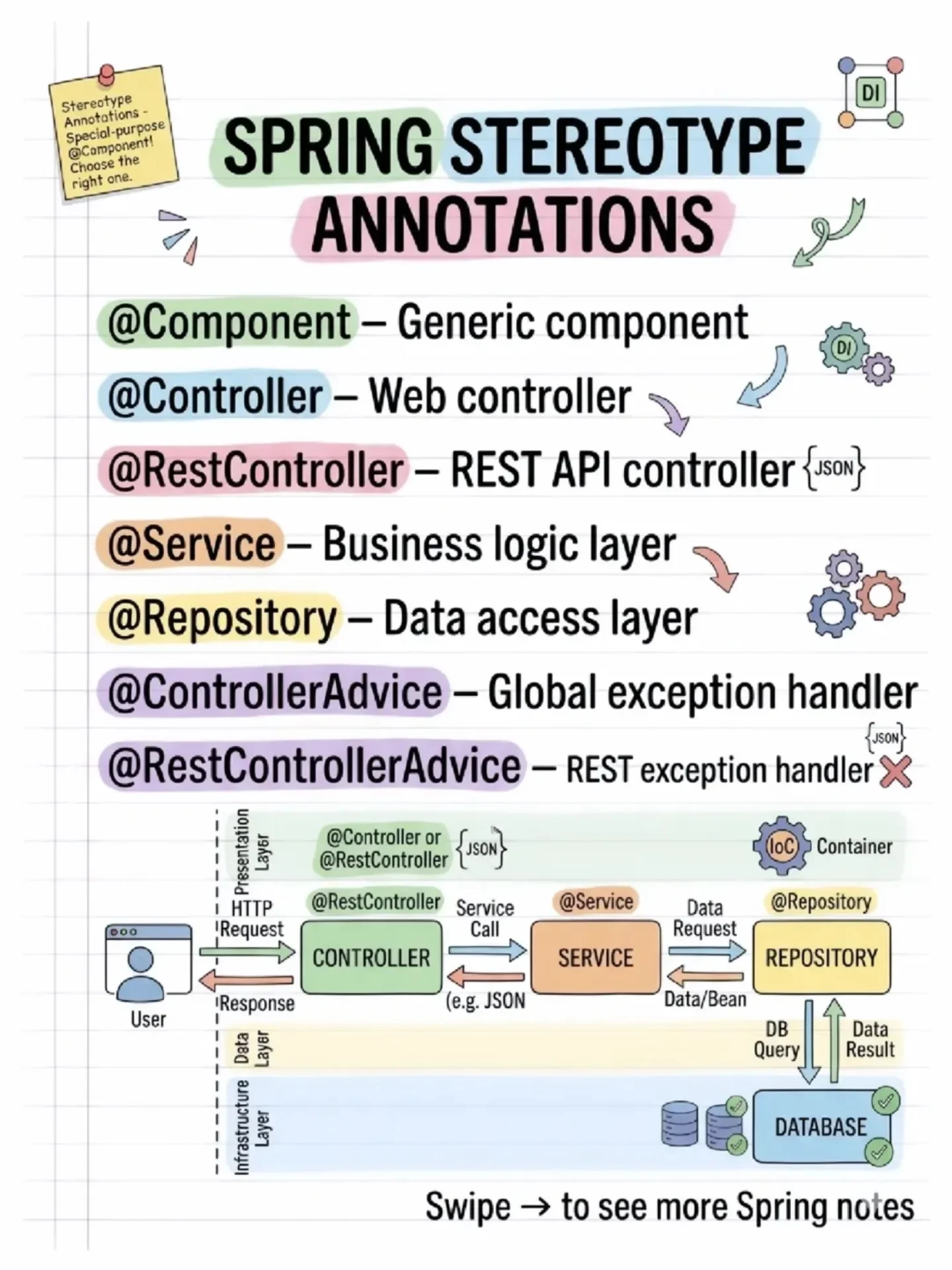 @RestController: Combines @Controller and @ResponseBody, indicating that the controller methods will return data directly in the response body.