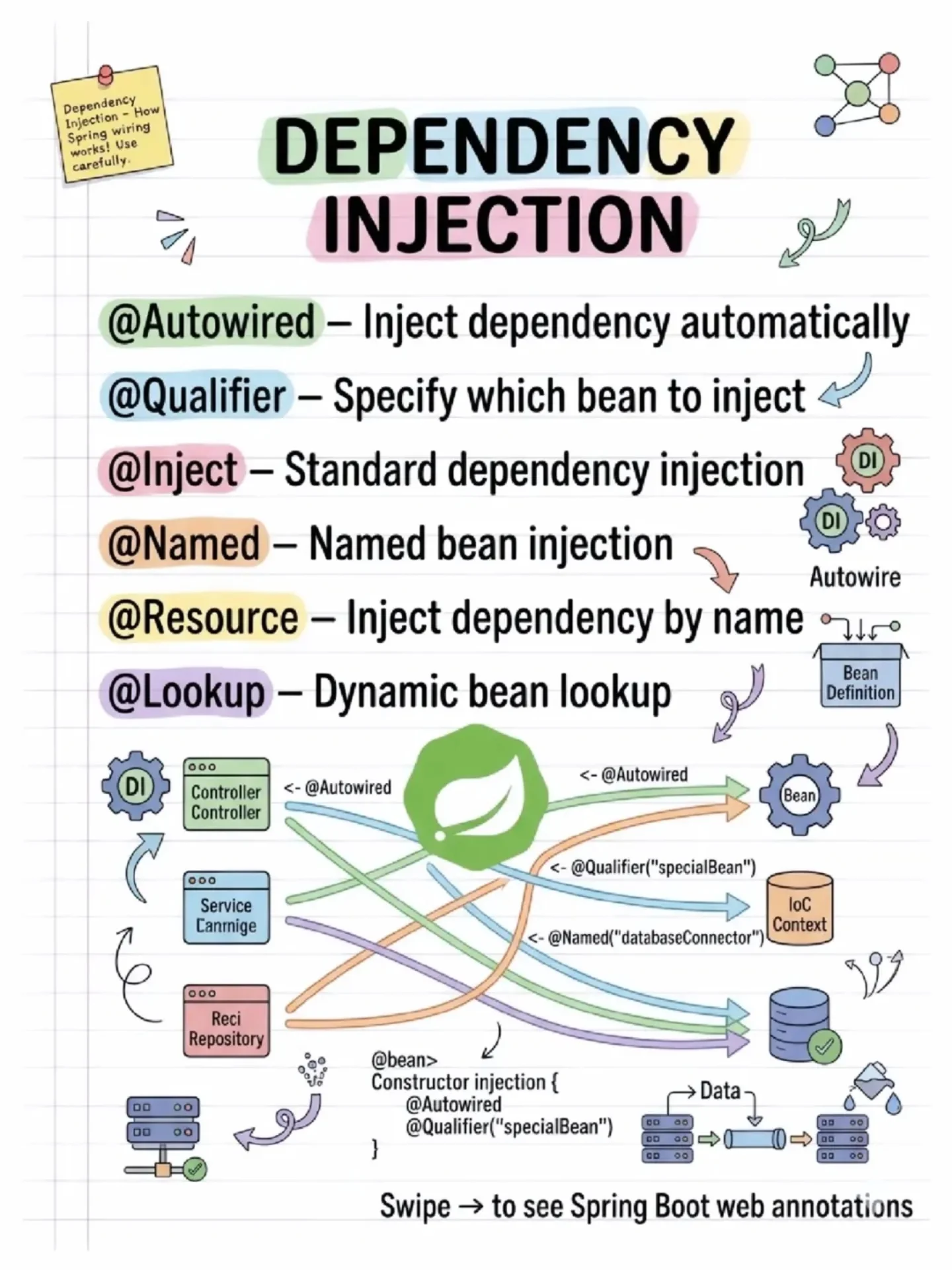 These annotations are used for defining web controllers in Spring MVC: